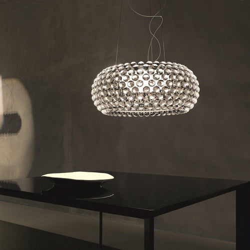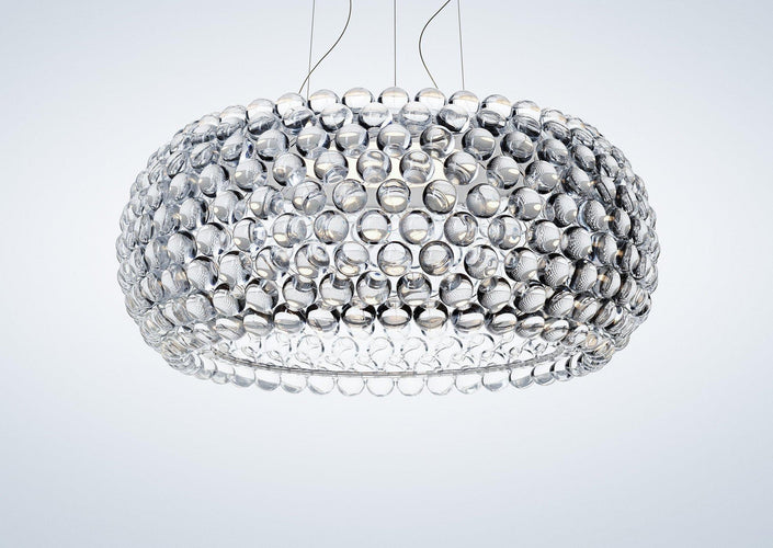 The Caboche lights by Foscarini transform light into a sparkling composition of transparent spheres: a design gem resulting from an amalgam of technology and creativity. The Caboche is one of Foscarini's best-selling products, and it has become a genuine icon in the world of lighting and design. Rich, bright and sophisticated, Caboche is a mosaic of refractions. When it is turned on, the light diffuses from inside the spheres like lots of bright crystals, providing 360° lighting of the surrounding environment and guaranteeing direct lighting on the underlying surface and reflection on the ceiling.