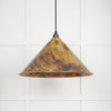The exclusive burnishing technique reveals beautiful layers of colour and texture within the metal, which creates a translucent feel when lit. Each pendant is burnished by hand to make every shade unique. Please note that this finishing process means that the colours and pattern may vary slightly from the images displayed.