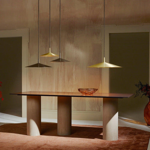 Inspired by natures gentle shapes of the Tinto Hill in Scotland and chosen for its ability to cast light downward in a dramatic way, the shallow conic shade of Tinto Pendant by CTO Lighting is fitted with a warm ambient integrated LED light that brings drama in scale with minimal lines over the objects. Tinto pendant lights can be used either singly as a centrepiece or in multiples exuding subtle luxury and refinement. A statement light that can bring confidence to any interior.