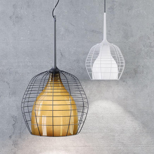 Translation missing: en.product_price.item.price.range_htmlOriginal price £726.00from £617.00from £617.00Current price £617.00| /The Cage pendant light by Diesel Living with Lodes - the contrast between the delicacy of the blown glass of the elegant glossy diffuser and the ha...
