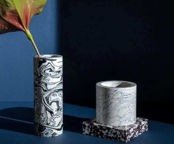 The Swirl small vase by Tom Dixon is a small vase with a distinct silhouette, colouration and personality. Substantial in weight, smooth in texture and bold in pattern, Swirl will inject a fresh pop sensibility into any setting. Made using recycled powdered marble residue, the vase is inspired by Ikebana, which is the Japanese art of flower arrangement.