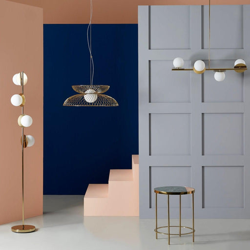 Translation missing: en.product_price.item.price.range_htmlOriginal price £300.00£240.00from £240.00Current price £240.00| /The Sand Opal Disk floor lamp, by Houseof is an absolute "room changer". The elongated metal stem suspends four disk-mounted glass opal shades, whi...