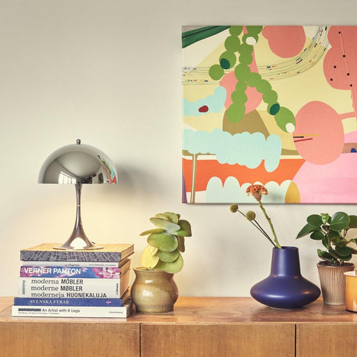 Translation missing: en.product_price.item.price.range_htmlOriginal price £725.00£580.00from £580.00Current price £580.00| /The Panthella table lamp by Louis Poulsen emits a glare-free, soft and comfortable illumination. The opal acrylic shade leaves a diffused comfortab...