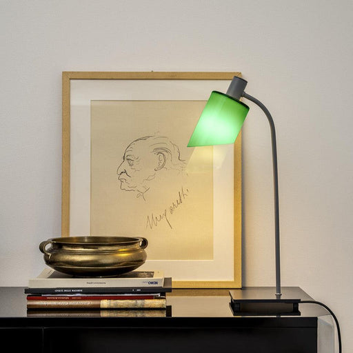 Translation missing: en.product_price.item.price.range_htmlOriginal price £385.00£308.00from £308.00Current price £308.00| /The Lampe de Bureau by Nemo has the grey steel stem is anchored to a lifted, almost suspended, darker base and the translucid pressed glass diffus...