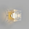 The Chant Surface light, by Lee Broom, inspired by the pressed glass bricks often used as an alternative to stained glass in places of worship during the 1970s, Chant is formed of blown glass cubes with a pronounced circular detail in either clear or frosted glass. The Chant Surface Light features a single glass cube mounted to a brushed gold or silver flush mount.