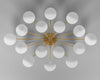 The Orion Oval chandelier by Schwung is a modern fixture that will make a subtle yet striking statement in any residential or commercial interior. This oval arrangement of lights explodes into a brass and glass sunburst, spreading across the ceiling. A constellation of illuminated globes linked to a central axis creates a space-defining sculptural impression. The flush mount base gives this majestic chandelier special adaptability.