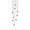 The Walnut Nine Pendant by Tala is an impressive lighting system designed for maximum impact. Encased in a large white circular canopy and nine Brass grips form a practical yet attractive base to hang nine Walnut pendants at varying lengths, creating a spectacular lighting display.