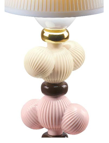 The Lladro Cactus Firefly Golden Fall Table Lamp is a wireless tabletop lamp composed of fragments of porcelain with a bright pink finish, crowned with a translucent porcelain screen.