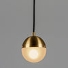 Recalling the basic elements of matter, the Molecule Single pendant light by Schwung is composed of brass connections. A rounded half glass and half brass cloche is clamped closed with brass screws, casting an enchanting spectral light.