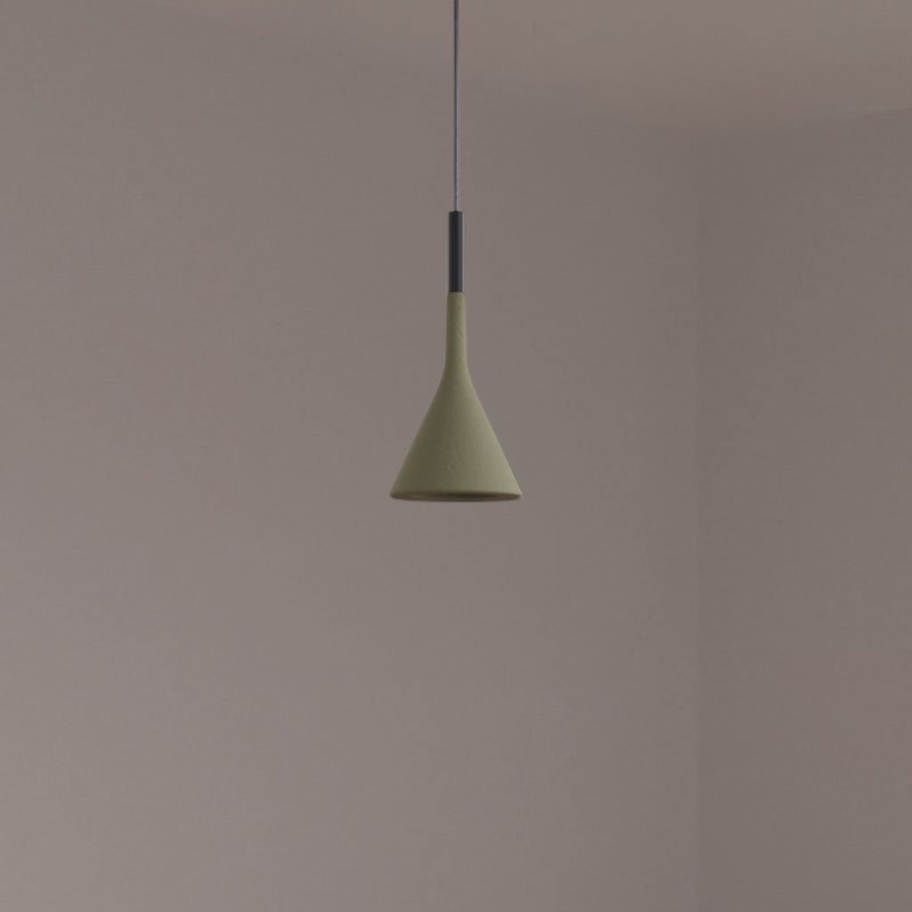 The polished concrete and aluminium Aplomb suspension pendant light, by Foscarini, was designed by Lucidi & Pevere and draws on the concept of plumb line & weight. The Aplomb beautifully combines sophistication and texture and casts a concentrated cone of light which makes it equally suited to use on its own, in a line or grouped together at different heights. The Aplomb Mini colours are created by mixing the pigment directly with the concrete.