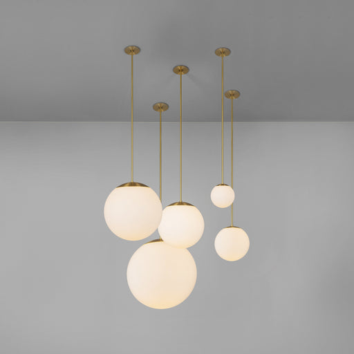 Translation missing: en.product_price.item.price.range_htmlOriginal price £599.00from £479.00from £479.00Current price £479.00| /The Glass Globe Opal pendant light by Schwung is a modern ceiling light made entirely of solid brass with mouth blown glass globes. The contemporar...