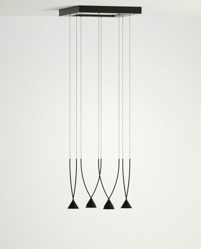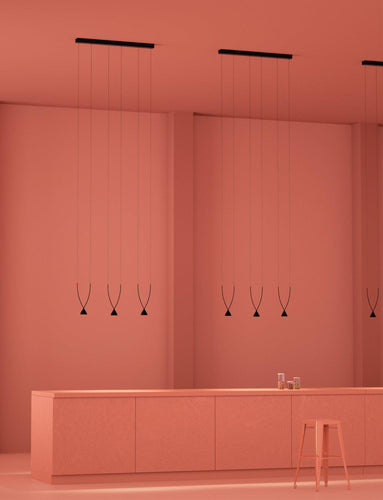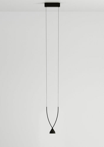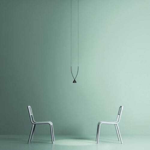 The Jewel suspension light by AxoLight is like a small precious jewel suspended between refinement and harmony. The Jewel shines intensely, without dazzling, in spaces of any size. It is a modular synthesis of taste and love for the environment. Design and sustainability come together in Jewel, a collection of suspension lamps whose peculiar element is a double crossed arch, made of nylon and recycled glass, which embraces an aluminium conical shape containing the LED light source. Designed by Clara del Portillo and Alex Selma of Studio Yonoh, Jewel is available in a single version for a more punctual lighting, or in a multi-light version to create a more diffused beam, ideal for contract spaces.