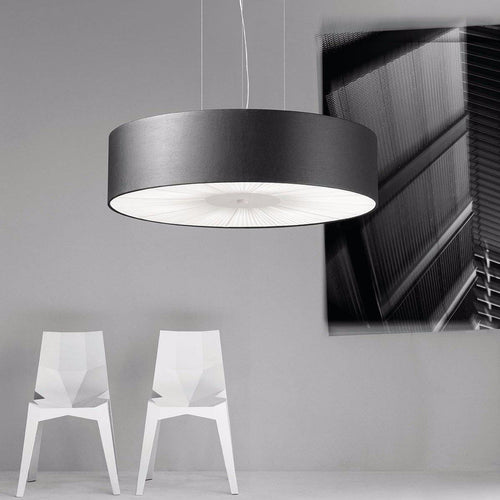 The Skin Suspension Light from Axolight is part of a collection consisting of ceiling lamps and suspended lamps. The lampshade is covered with flame-retardant eco-leather.