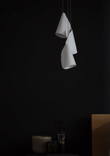 The 21 by Bocci results from a fabrication process in which thin porcelain sheets are draped over an inverted diffuser made of sandblasted borosilicate glass. The thin porcelain skin is allowed to dress the borosilicate core in whatever form occurs naturally – creating a unique shape in every iteration of the fabrication process.