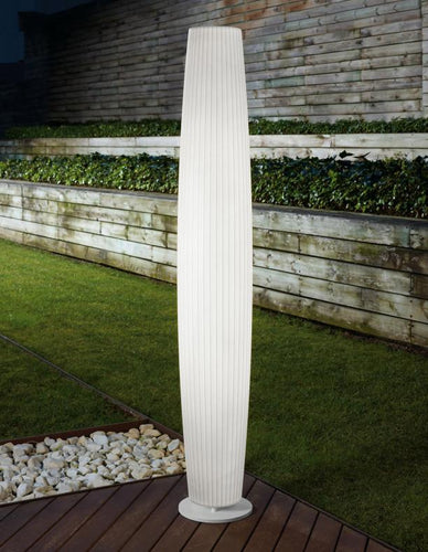 The Maxi Outdoor Floor Lamp by Bover was created back in 2001, its timeless style makes it still relevant today. Its sleek structure with beautiful warm glow creates the perfect atmosphere for any outdoor area. The Maxi P/180 is constructed with translucent ribbon with the base formed with iron and stainless steel.