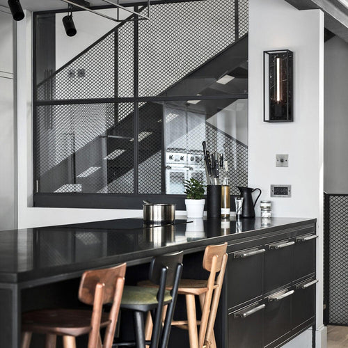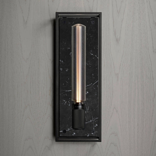 The Caged, by Buster + Punch, is a wall light made from a matt black metal cage and comes with a polished white marble back panel. The wall light is finished with a matt black knurled lamp holder and penny buttons. This light can work on its own or in linear procession for maximum impact. This light looks great when teamed up with the Buster Bulb / Tube (sold separately).