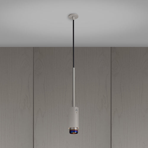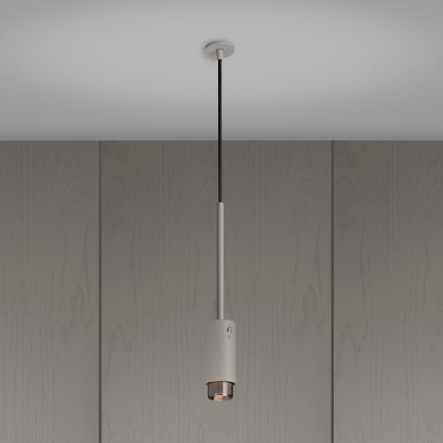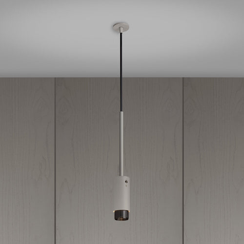 The Exhaust, by Buster + Punch, is a pendant spotlight made from graphite powder coated metal with solid metal detailing. The pendant features linear-knurl baffle and machined torx screws. The baffle captures light and creates a delicate metallic glow, whilst a honeycomb filter emits a precise, non-glare, directional spotlight. The pendant comes with 3m of cable, has a flush ceiling rose and fits a GU10 bulb. Also included is a ceiling rose extender, in matching stone metal, for installation to exposed cabling.
