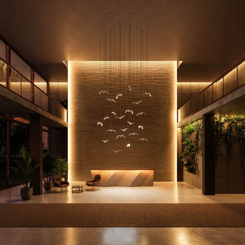 Inspired by the abandon and freedom of bird flight, the innovative Night Birds pendant lights, by Brokis, impart poetic enchantment and unparalleled dynamism to any interior. Night Birds differ from the other collections in the unique technology applied in production, which involves melting glass into a mould and then bending it. The process makes it possible to instil delicate nuances in the shape of the wings and achieve a coloration of the glass that is different and wholly unique each time.