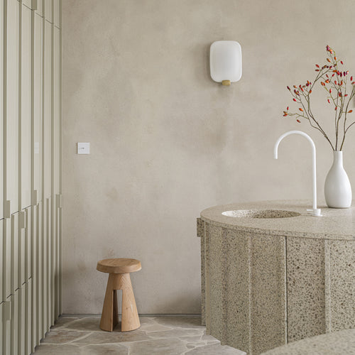 The Light Me Tender wall light by DCW Editions allows you to modulate the light and the material. An elegant light for an object that plays with intimacy. Inspired by the shades of dawn or dusk, Light Me Tender is a soft light that reveals us in the mirror. To be tender is to be enlightened. To accept oneself is to modulate the light. The design is very simple, like a single cloud standing out against a blue sky. Initially designed for the bathroom, Light Me Tender can also be used in a hallway or entrance.