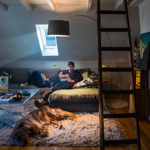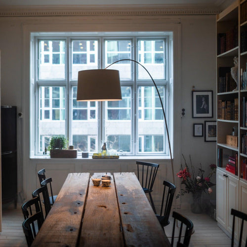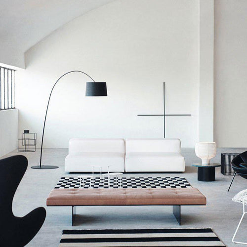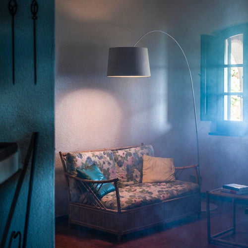 The Twiggy floor lamp by Foscarini is available in white, black, greige, crimson and graphite and suspends a large diffuser in mid-air via a fine arched line - concurrently casting direct light downwards and suffused light upwards. Combining simplicity with flexibility and versatility, the Twiggy bends harmoniously and can be height adjustable to accommodate any setting.