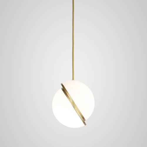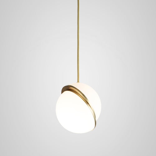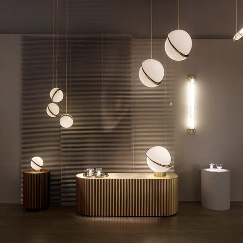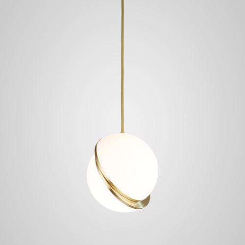 The Mini Crescent pendant light, by Lee Broom, is a miniature version of the popular Crescent Light, this illuminated sphere is sliced asymmetrically in half to reveal a crescent-shaped brushed brass fascia. Mini Crescent seamlessly combines the solid and the opaque.