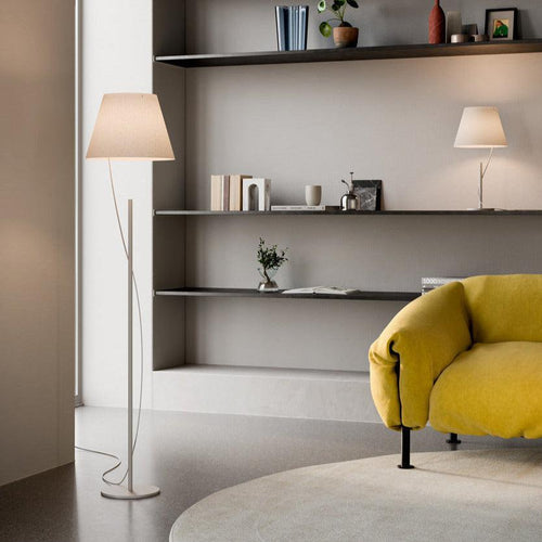 The Hover floor lamps feature a lamp shade that looks as if it is detached from the base, connected seamlessly by a single cable that runs through the stem and comes out of the other end. The end result creates an illusion that the light source is almost weightless and floating in the air, like a balloon.