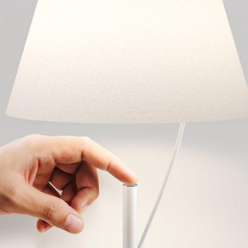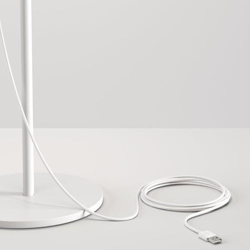 Hover features a dimmer controlled by a power switch on the upper end of the stem, users can simply touch the top of the stem to modulate the intensity of the light. All typically external technical functions have been carefully incorporated within the lamp’s internal structure. Additionally, the power supply comes in the form of a USB cable.