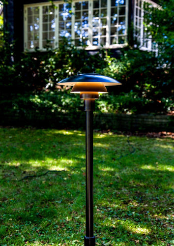 Poul Henningsen designed the three-shade system back in 1925-1926. The first lights using the system were designed by PH in cooperation with Louis Poulsen for an exhibition in Paris. Throughout his life, PH sought to create glare-free light, direct light where it was most needed, and create soft shadows, using incandescent bulbs as a light source. PH 3/2½ Bollard was introduced in 2005.