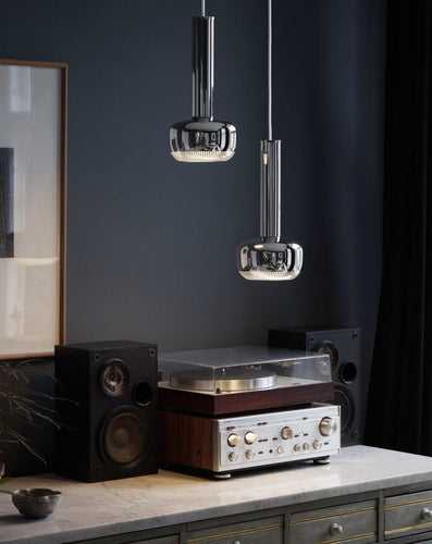 The well-known functionalist architect, Vilhelm Lauritzen designed the VL 56 Pendant for Folkets Hus, in Vesterbro Copenhagen. Originally designed and built for the Danish Labour Movement, the building opened in 1956 and is now used as a concert hall, called Vega. The VL 56 Pendant is one of the lamps Vilhelm Lauritzen designed for Vega, and to this day it hangs above the wood-panelled bar, adjacent to the concert hall. Both the chrome and brass variants were reintroduced in 2023, with slight adjustments and improvements.