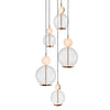 The Rosa Collection by Marc Wood was designed to showcase the opaque beauty of natural marble. The pendant incorporates a backlit Rosa Estremoz marble disc that emits a soft, warm illumination, pierced by the natural veining of the stone. The double faced LED base creates additional glow with reflections and light play framed in a crystal glass sphere.