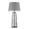 The Sawyer Table Lamp from Northern Lights. This freeform glass bodied table lamp has an unusual crackle effect to it which is highlighted by the gradient from dark to light within the base. The metalwork complements the glass with its oiled brass colour and finally the lamp is completed a with a Smoke fabric Soho Drum shade.