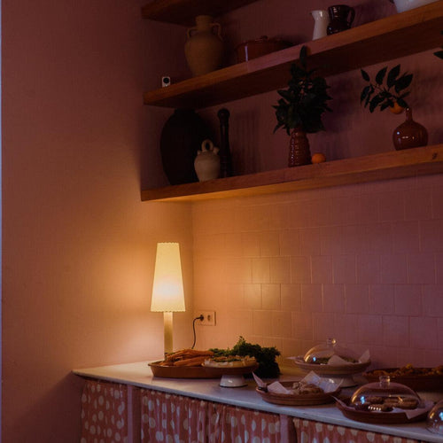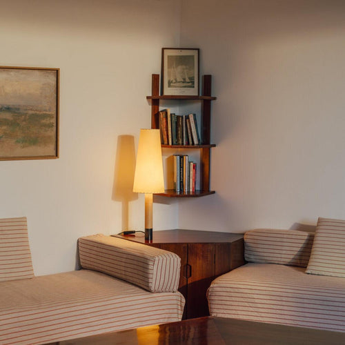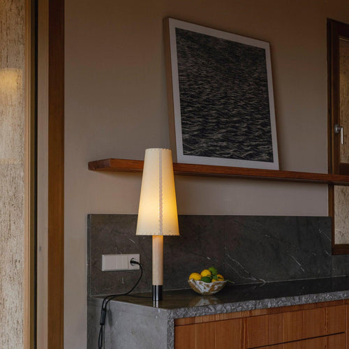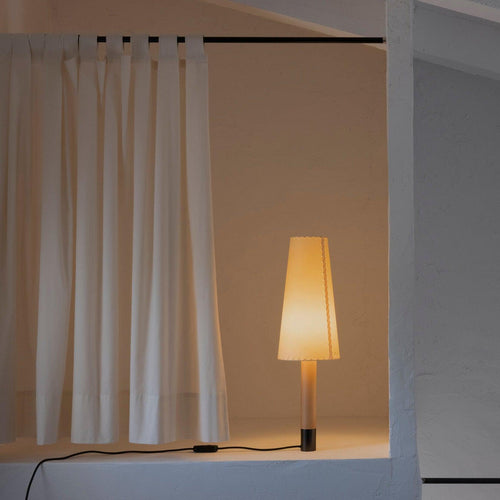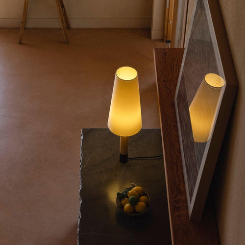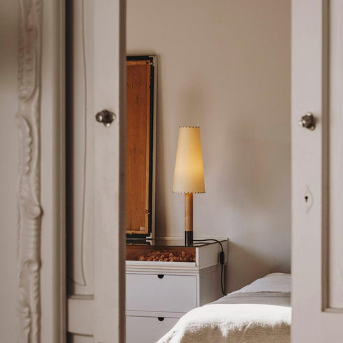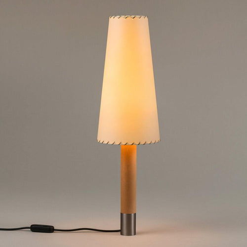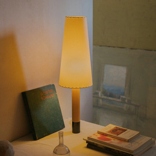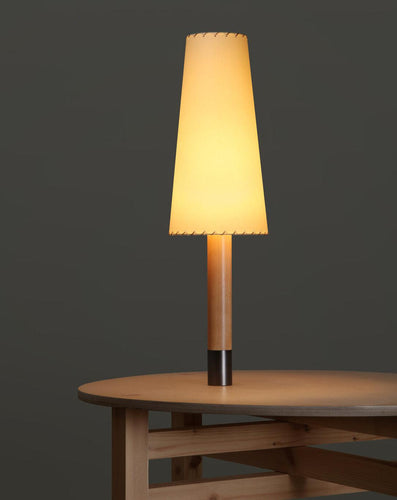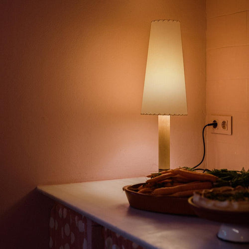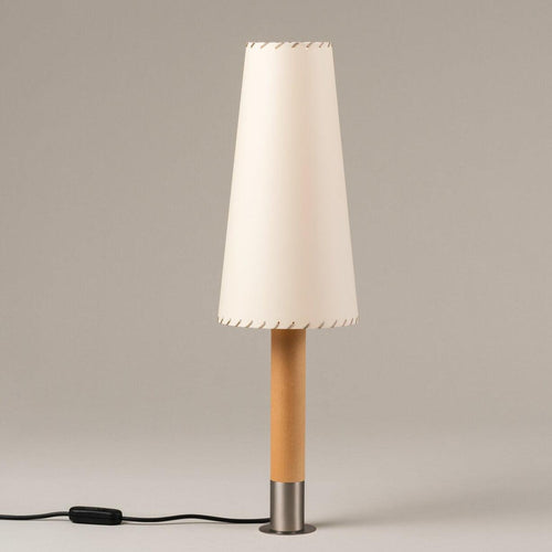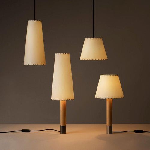 The Básica lamp by Santa & Cole champions the return to natural materials. A birch wood cylinder, which is supported by a heavy metal base of equal diameter, holds a variety of shade options of different shapes and colours, made of sewn paperboard or ribbon. In defiance of the metallic taste of the eighties.
