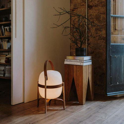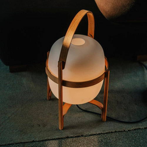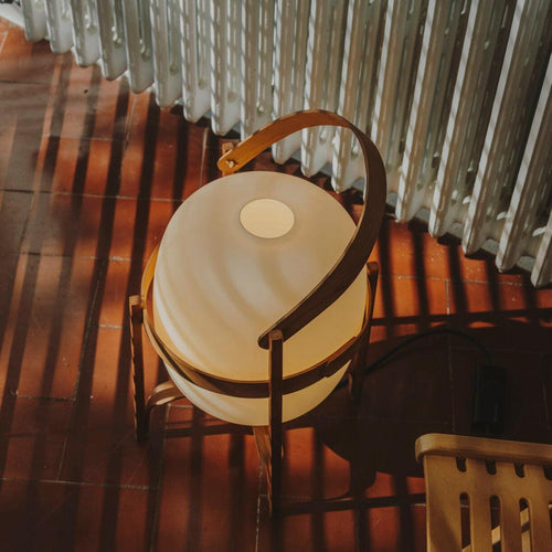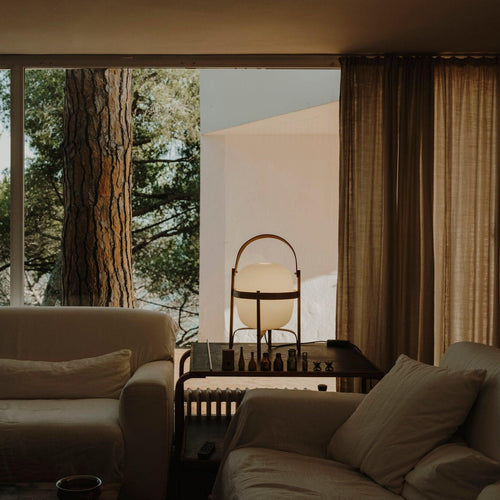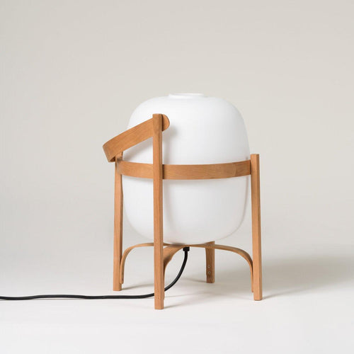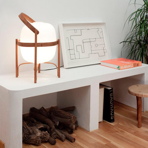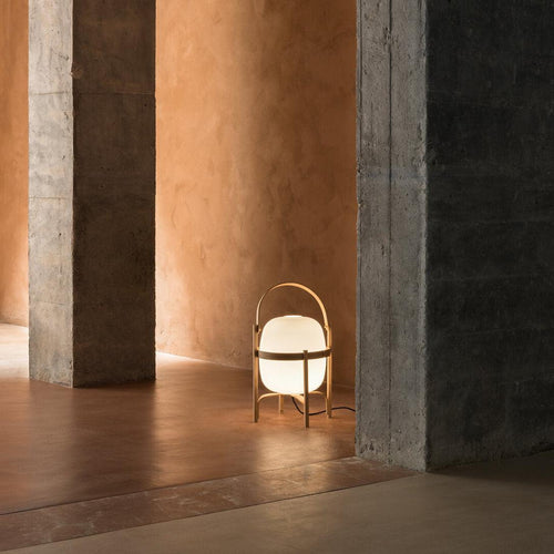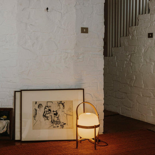 The unique Cesta table lamp by Santa & Cole. On a stroll through Barcelona in the 1960s, designer Miguel Milá found an abandoned opal globe outside a glass factory. He took it home, and over the years, it became the heart of a large family. As its name suggests, Cesta (Spanish for “basket”) was designed to hold this fragile shade.