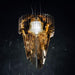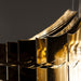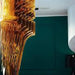 Its unique design comprises of 50 layers of sculpted polycarbonate panels with a shining gold powder finish. Each panel is different from the next and arranged around the integrated LED light source, creating a lavish ambiance with minimal energy consumption.