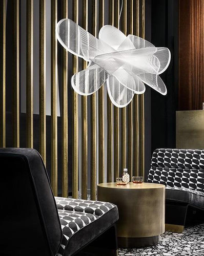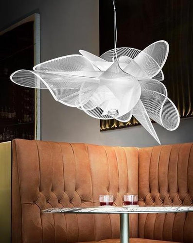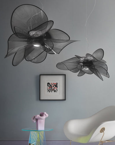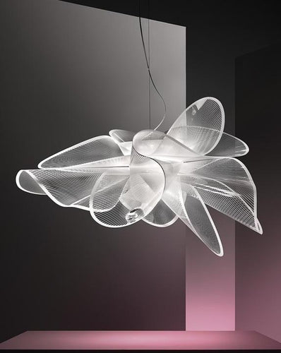 La Belle Etoile suspension light by Slamp is inspired by the graceful twirling of a ballerina. The lightweight yet unbreakable lamp is completely handcrafted in Slamp’s atelier. The dialogue between technological innovationand stylistic originality speaks loudly; the LED source can be easily and quickly changed thanks to the exclusive magnetic hanging system, and a white texture printed on transparent polymers, are elements that combine to create refined, contemporary design. The soft, luminous LED source can be dimmed from full illumination to a supple ambient glow to compliment its surroundings. Both the suspension and wall / ceiling versions are versatile, avantgarde lighting solutions offering minimalistic, glamorous aesthetics. La Belle Étoile brings sculptural illumination to an array of interiors.