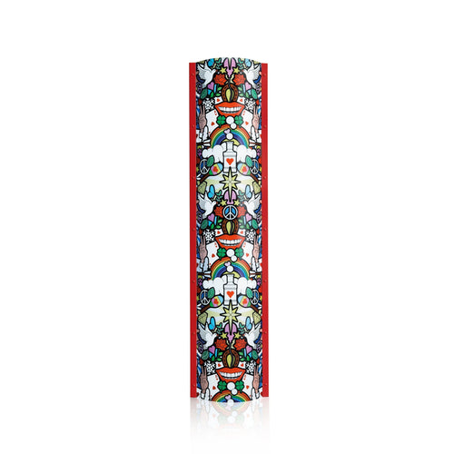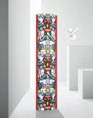 Dense metaphoric suggestions, transposed cult references, and two-dimensional forms take on depth when printed on transparent Cristalflex® superimposed on an Opalflex® layer, transmitting the light uniformly.