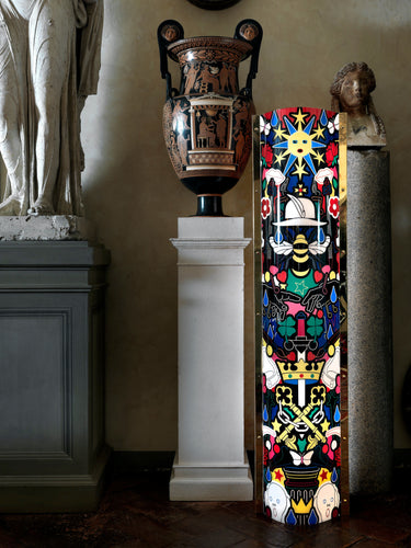 Iconic semantics meet Dadaist derivations in Studio Job’s ode to the Tube, bringing a daring poetic aura to the historic Slamp lighting masterpiece, first produced in the early nineties.