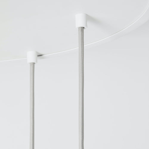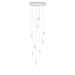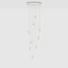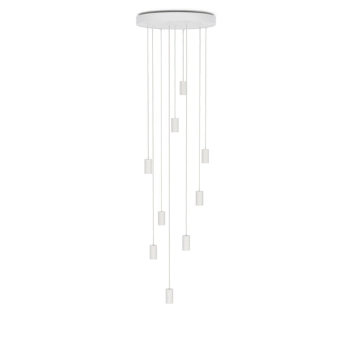 The Alumina Nine Pendant fixture is a configurable lighting solution from Tala, combining nine Alumina pendants with a large ceiling canopy, all in a textured, dusky-white Chalk finish.