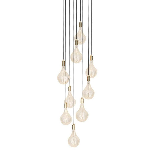 The Brass Nine Pendant by Tala is an impressive lighting system designed for maximum impact. Encased in a large white circular canopy, a broad brass disc and nine Brass grips form a practical yet attractive base to hang nine Brass pendants at varying lengths, creating a spectacular lighting display. Paired with Tala warm-dim Voronoi II lightbulb.